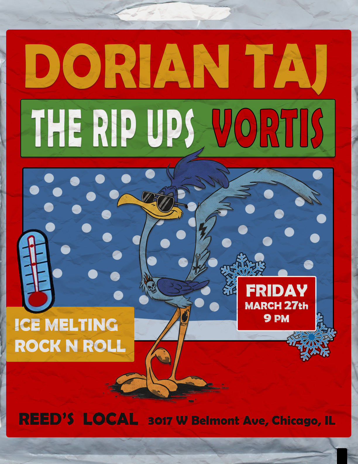 Join us for a night of searing rock 'n' roll and great times at the one and only Reed's Local. Friday, March 27th, 2026. Music starts at 9 pm. Reed's Local is located at 3017 W Belmont Ave. in Chicago IL.